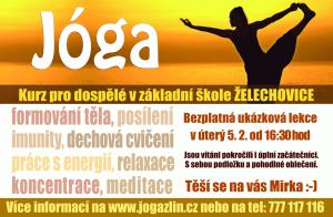 od února začíná u nás v Želechovicích na základní škole nový kurz jógy pro dospělé.