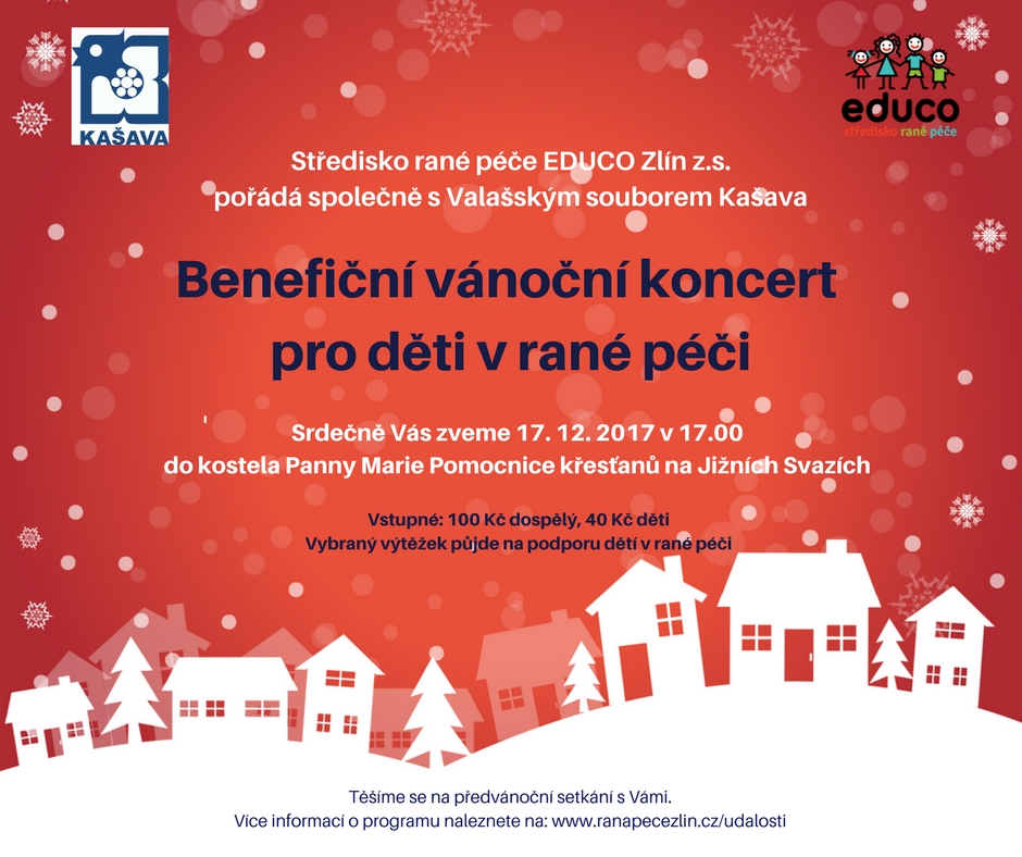 Chybět nebude ani výborný vánoční punč. Výtěžek bude věnován Středisku rané péče EDUCO Zlín z.s., které zajišťuje podporu rodinám s dětmi s postižením ve Zlínském kraji.