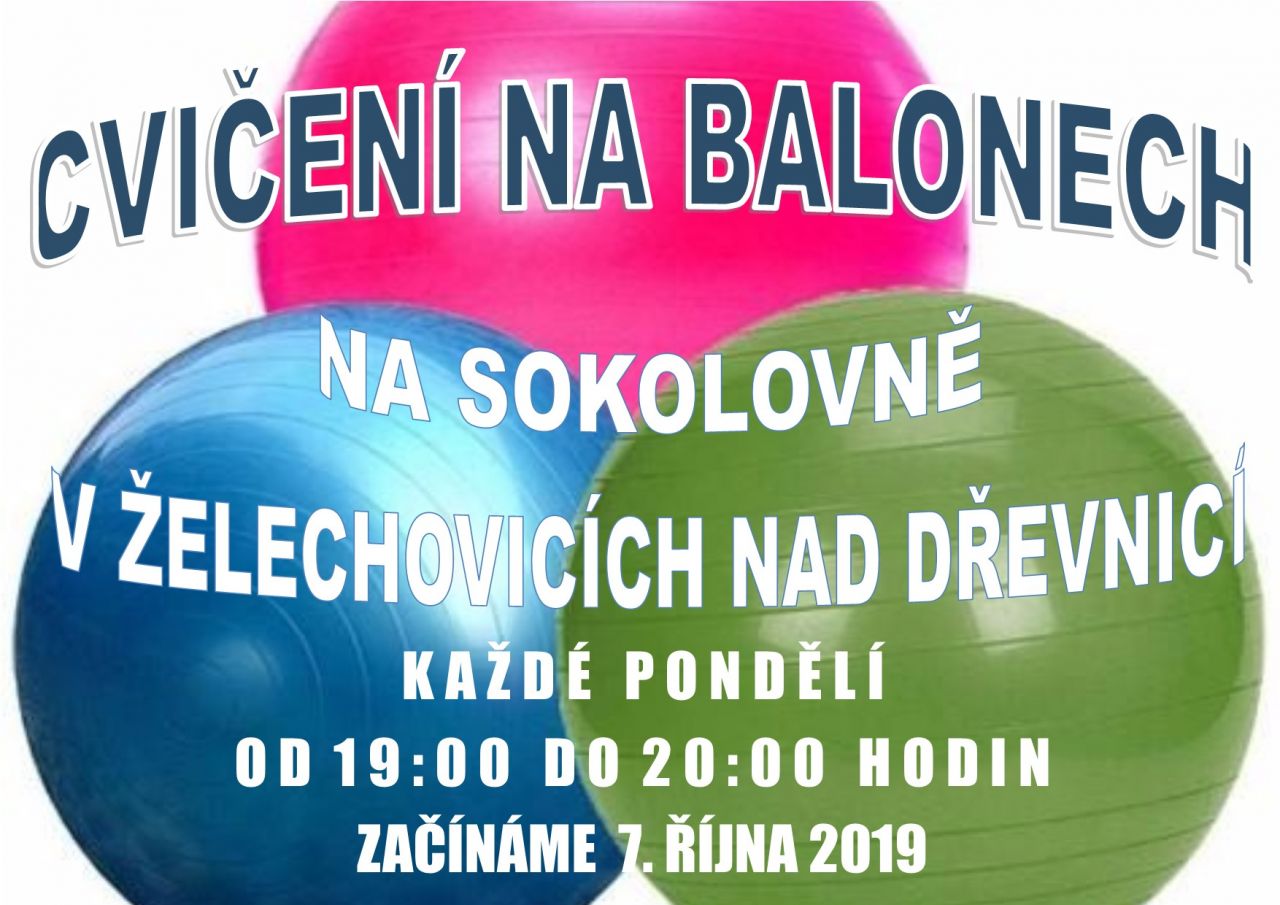CVIČENÍ NA BALONECH na Sokolovně v Želechovicích nad Dřevnicí, každé pondělí od 19:00 do 20:00 hodin, začínáme 7. října 2019.