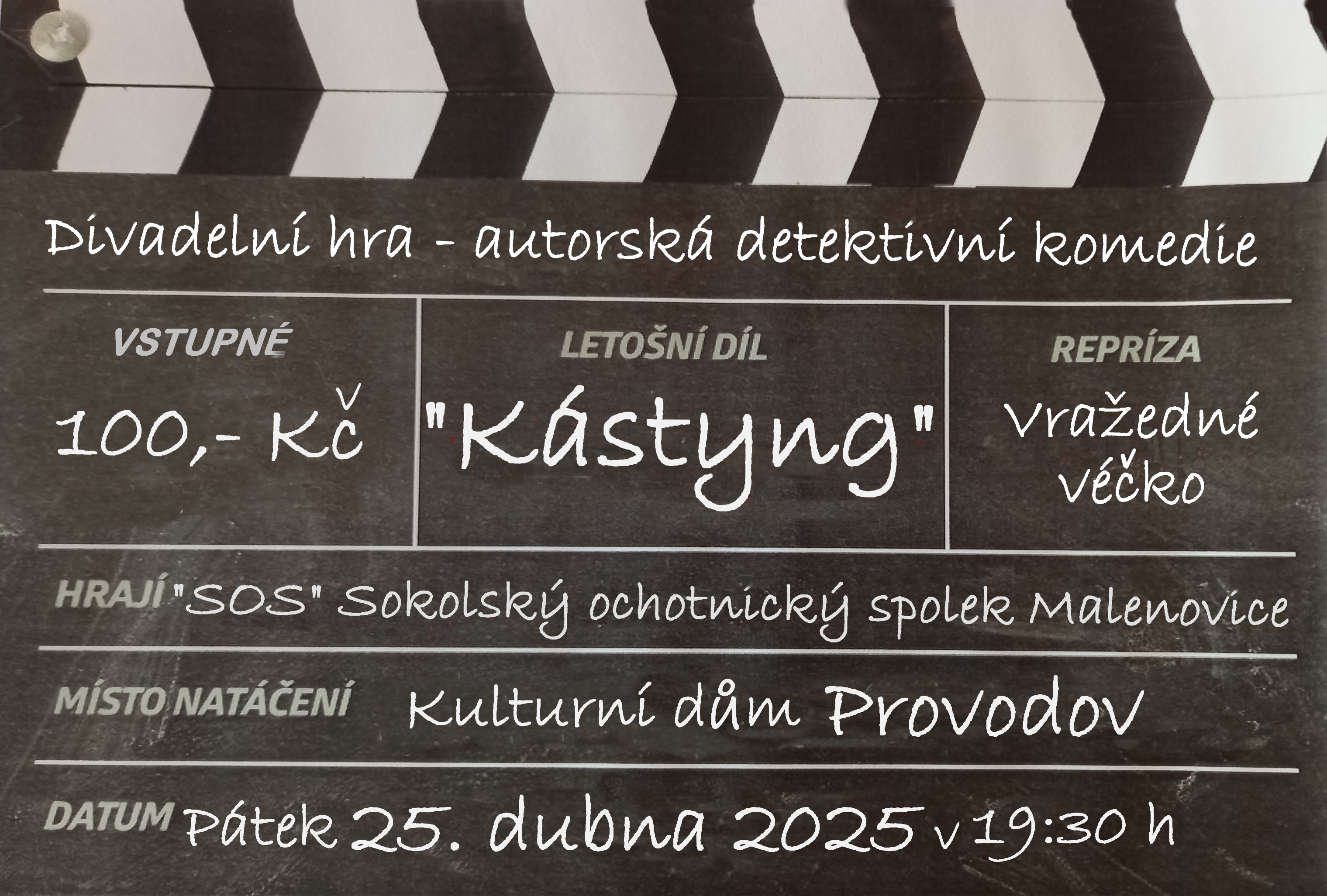 Srdečně vás zveme na autorskou detektivní komedii "Kástyng" v podání Sokolského ochotnického spolku Malenovice.