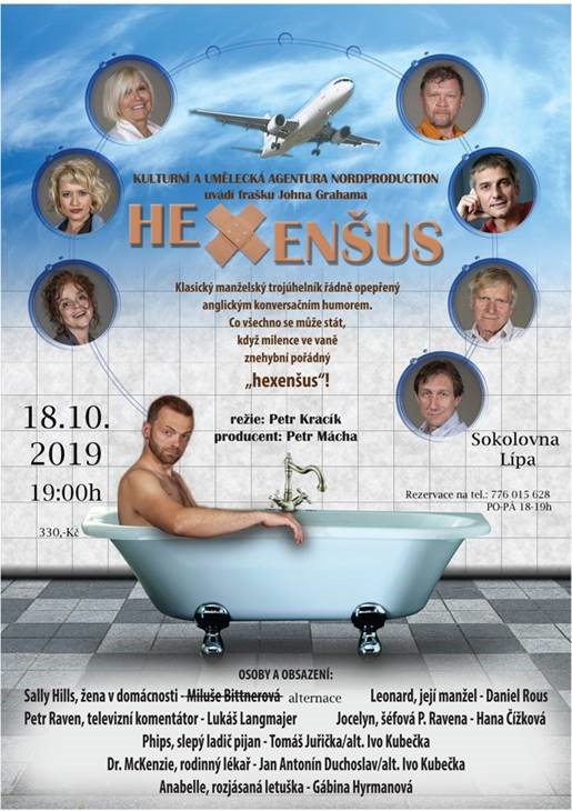 Pozvánka na divadelní představení Hexenšus 18.10.2019, sokolovna Lípa. Předprodej zahájen, lístky si můžete rezervovat na tel.: 776 015 628.