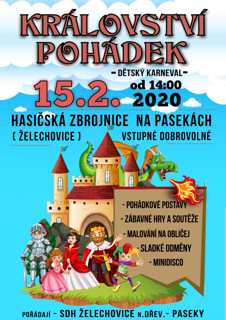 V sobotu 15. února 2020 od 14:00 hodin se bude konat v hasičské zbrojnici na Pasekách - dětský karneval.