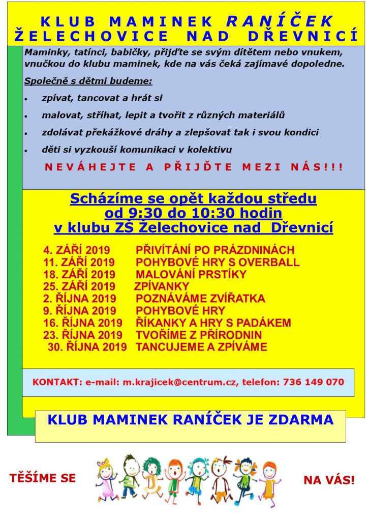 Program klubu maminek RANÍČEK na měsíce září - říjen 2019.