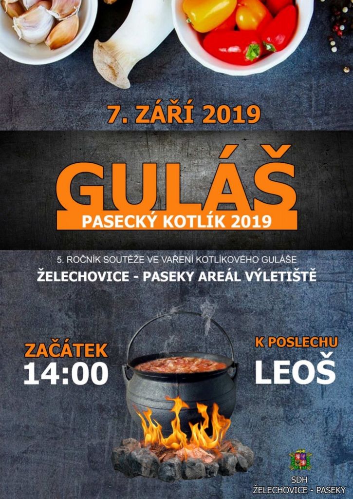 Dne 7.9.2019 se uskuteční V. ročník soutěže ve vaření libovolného druhu kotlíkového guláše. Tímto jsou srdečně vítáni všichni ti, kteří mají zájem předvést své kuchařské dovednosti, ale také všichni ostatní, kteří chtějí jen tak ochutnat.