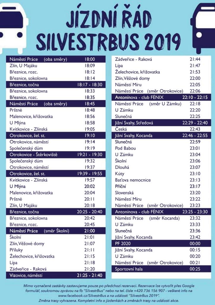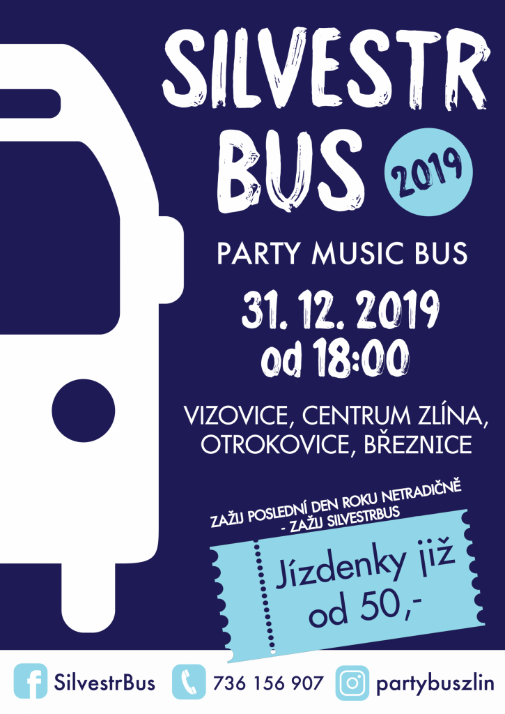 PARTY MUSIC BUS 31.12.2019 od 18:00 hod.Letos ze zastávkou i v Želechovicích nad Dřevnicí, křižovatka 21:15 hod. Podrobný jízdní řád je v příloze.
