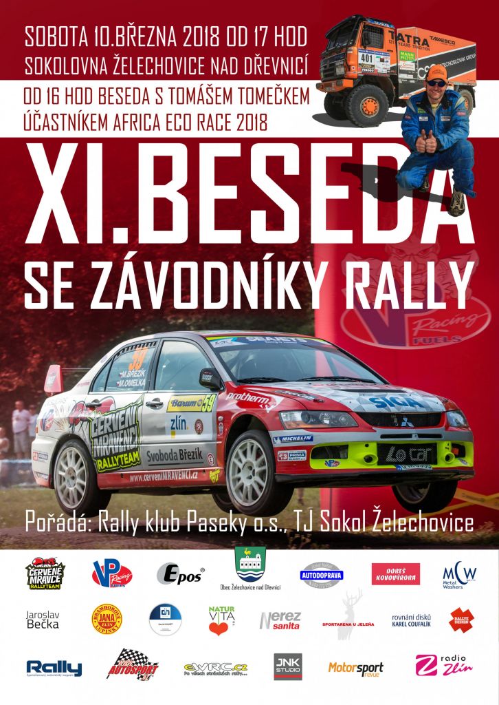 V sobotu 10. března 2018 od 16 hodin, se na sokolovně v Želechovicích nad Dřevnicí bude konat XI. BESEDA SE ZÁVODNÍKY RALLY.