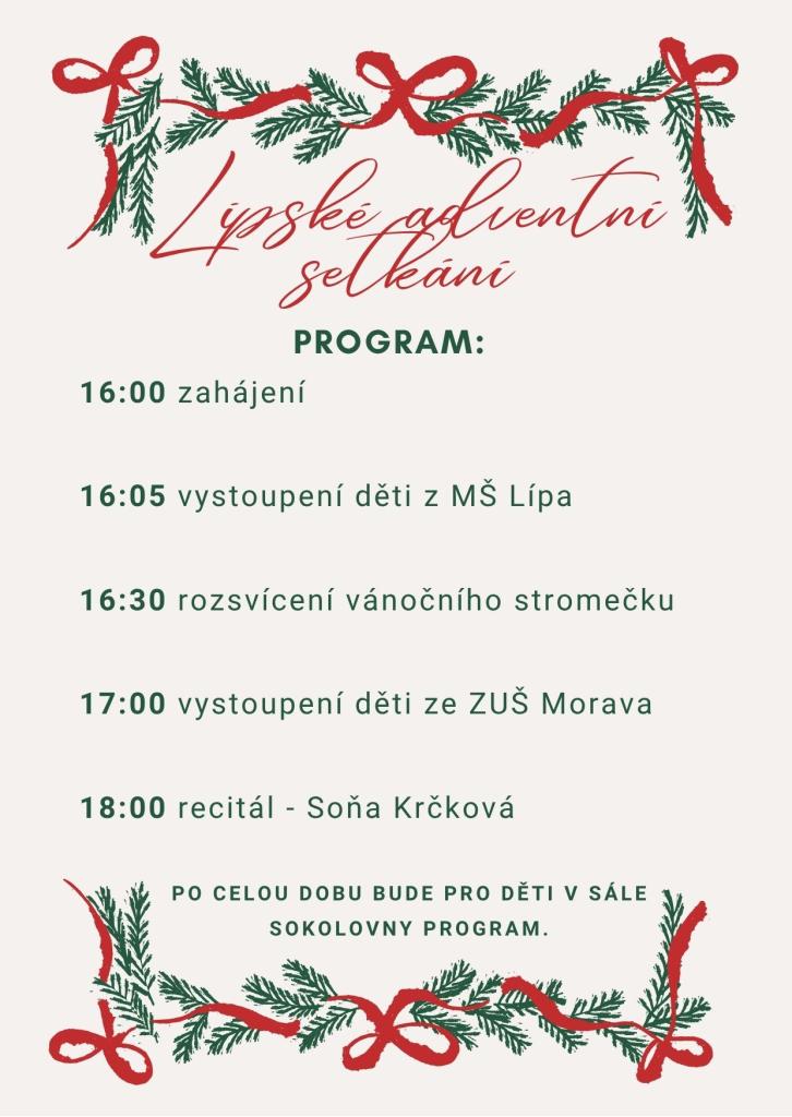 Lipské adventní trhy s rozsvícením vánočního stromečku se konají v pátek 21. listopadu 2025 od 16:00 hodin v areálu sokolovny v Lípě.