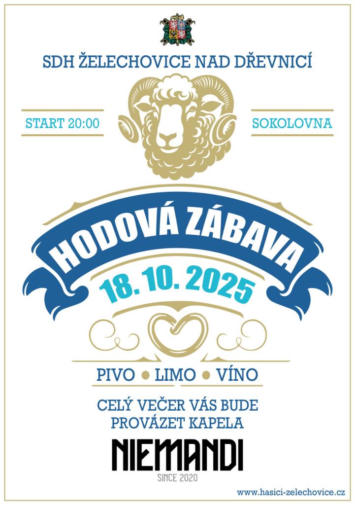 v sobotu 18. října 2025 v naší obci uskuteční již 19. ročník hodů, kdy budeme od rána vodit berana po obci a zvát Vás na večerní hodovou zábavu, která se uskuteční v tento den v Sokolovně od 20:00 hodin.