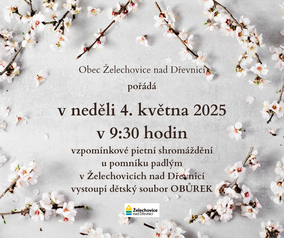 V neděli 4. května 2025 v 9:30 hodin pořádá Obec Želechovice nad Dřevnicí vzpomínkové pietní shromáždění u pomníku padlým v Želechovicích nad Dřevnicí, vystoupí dětský soubor OBŮREK.