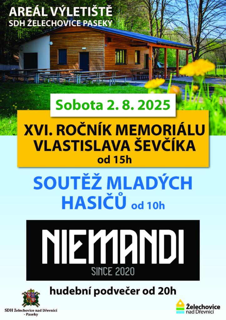V Sobotu 2.8.2025 proběhne další ročník memoriálu Vlastislava Ševčíka od 15 hodin a soutěž mladých hasičů od 10 hodin.