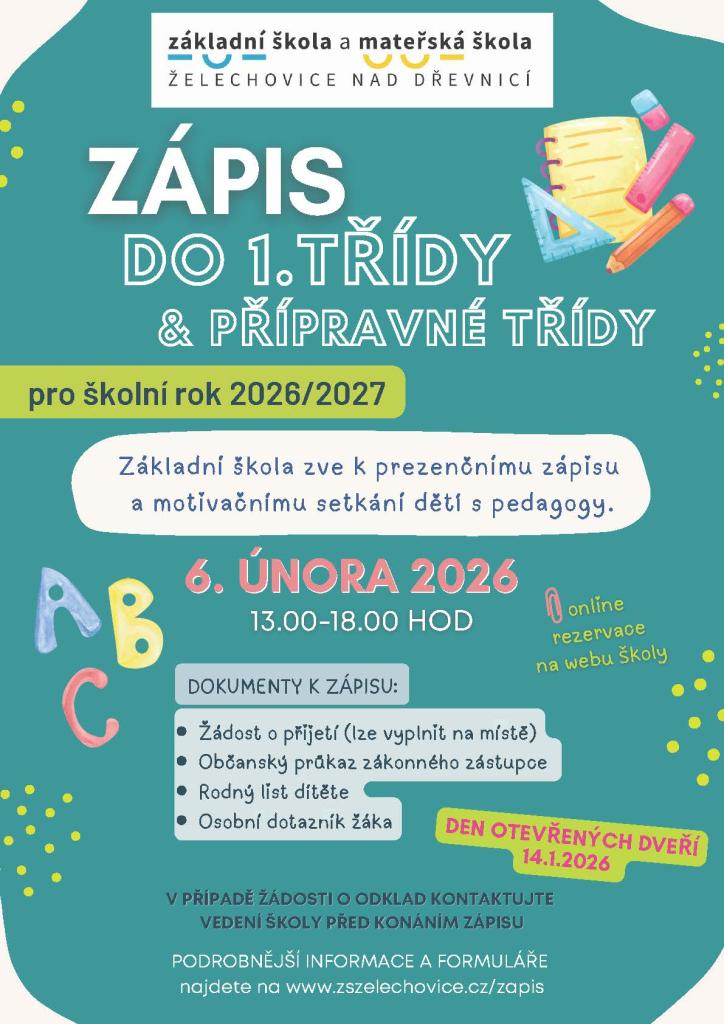 Den otevřených dveří se uskuteční ve středu 14. 1. 2026 od 8.00 do 9.45 hodin.