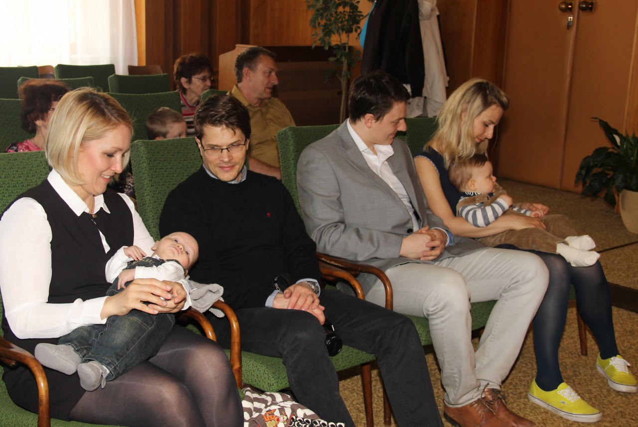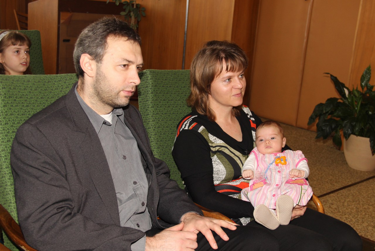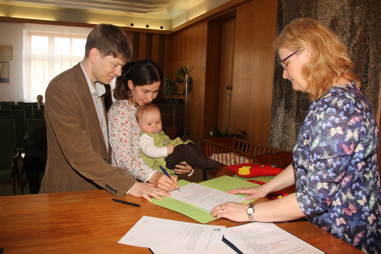 Rodiče převzali z rukou starosty Michala Špendlíka finanční dar ve výši 1 000 Kč, který obec poskytla novým občánkům.