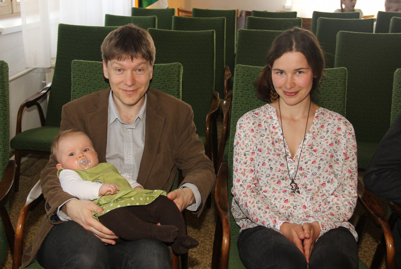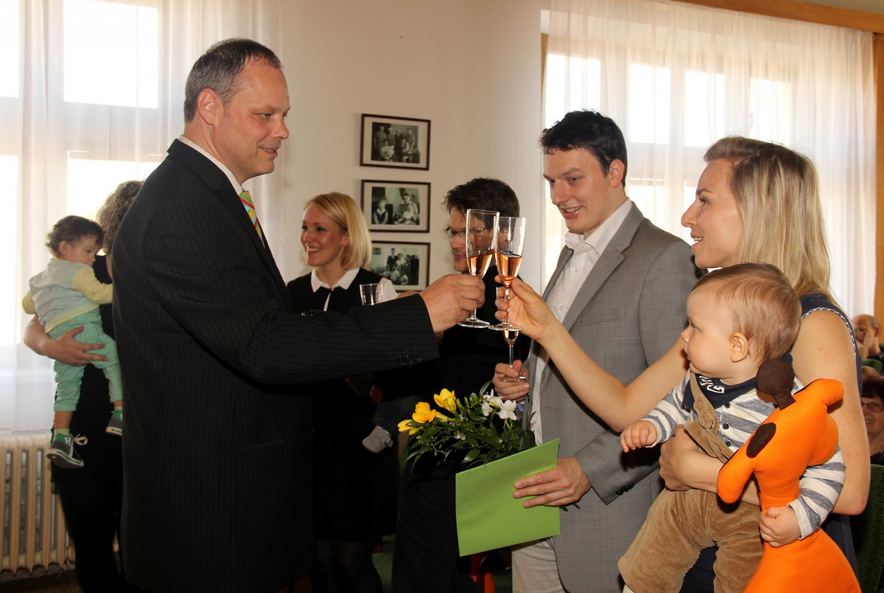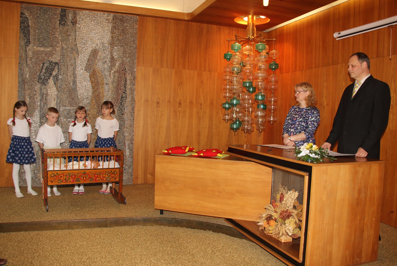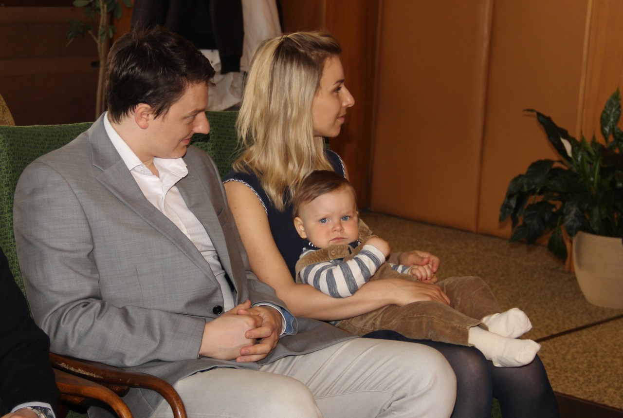 Rodiče převzali z rukou starosty Michala Špendlíka finanční dar ve výši 1 000 Kč, který obec poskytla novým občánkům.