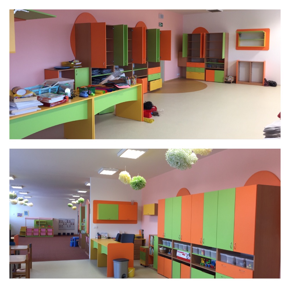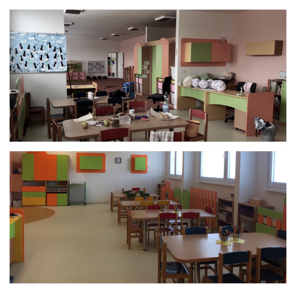 O jarních prázdninách 19.-23.2.2018 proběhlo přestěhování třetí třídy školky do nově zrekonstruovaných prostor v budově Základní školy. Stavbu realizovala firma Zlínské stavby, s.r.o., která spolu se školkou zrealizovala i stavbu parkoviště u jídelny. Stěhování zbylých dvou tříd do nových prostor je naplánováno v průběhu letních prázdnin tak, aby od nového školního roku byla školka kompletně přestěhovaná.