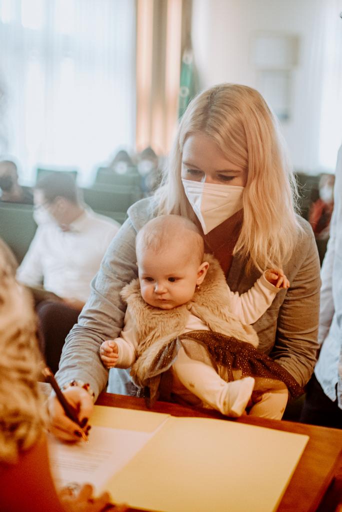V sobotu 4. prosince 2021 proběhlo v obřadní síni obecního úřadu v Želechovicích nad Dřevnicí tradiční VÍTÁNÍ OBČÁNKŮ. Přivítáno bylo celkem 5 děvčátek: Kateřina Navrátilová, Ema Pantálková, Beáta Dlabajová, Klára Čelůstková a Anna Kovářová. Fotografovala: Sabina Kolářová.